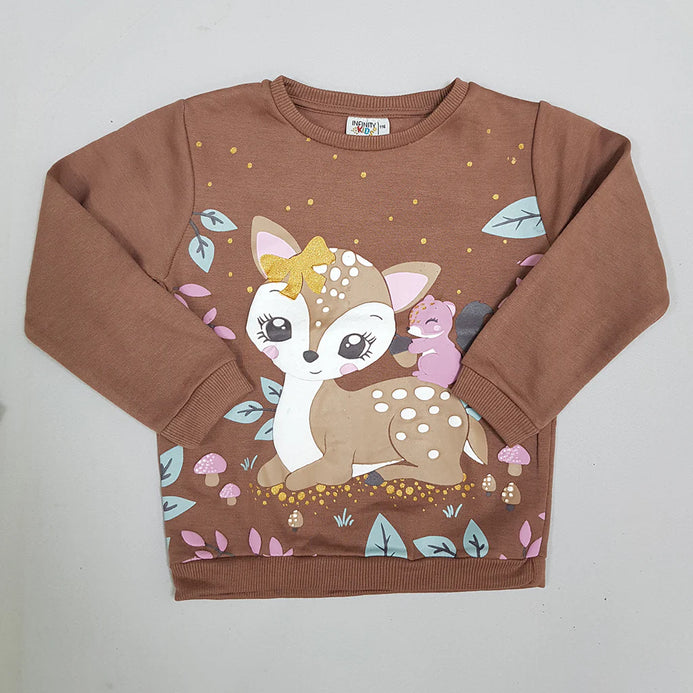 IFNTY Kids Deer & Squirrles Applic Brown Fleece Sweatshirt 13608