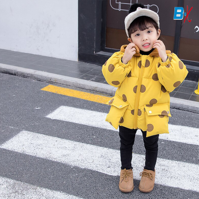 JK Polka Dots Velvet Cap Mustard Puffer Jacket 10115