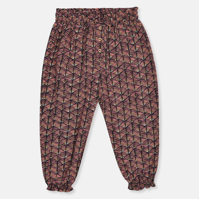 KIB Retro Print Belt Style Cotton Navy Blue Trouser 13151