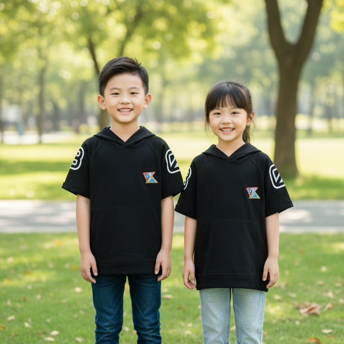 L&S ACE Entry Level Badge Sided Zip Style Half Sleeve Black Terry Hoodie 14483
