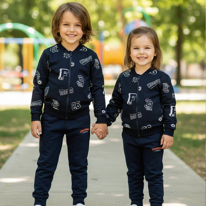 L&S Champion 92 Terry Mock Neck Zipper With Trouser Navy Blue Tracksuit 14706