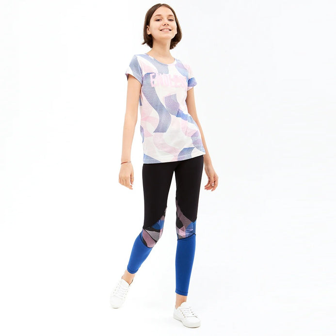 L&S Girls Never Give Up Retro Knee Panel Black Legging 11330