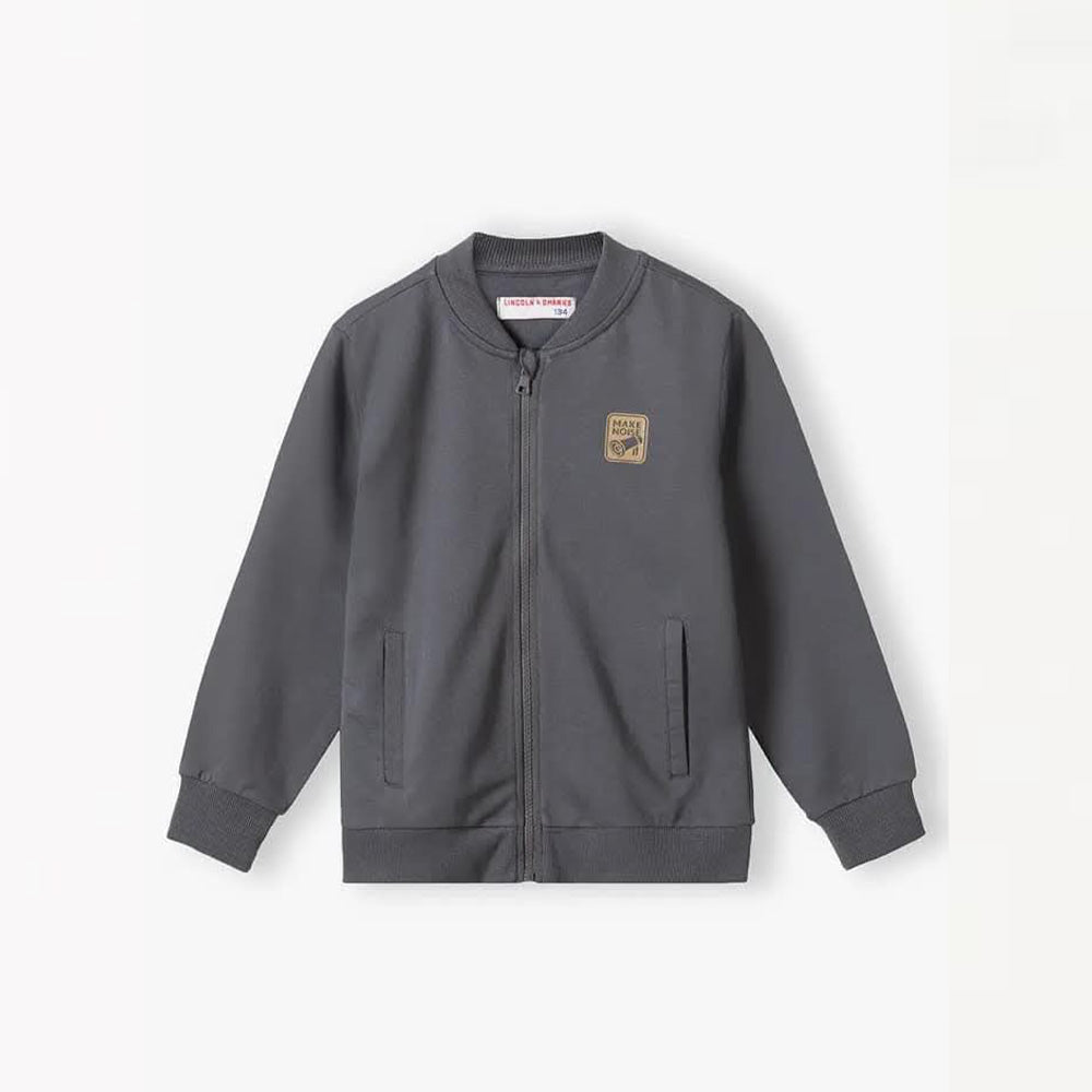 L&S Make Noise Grey Mock Neck Terry Zipper 13911