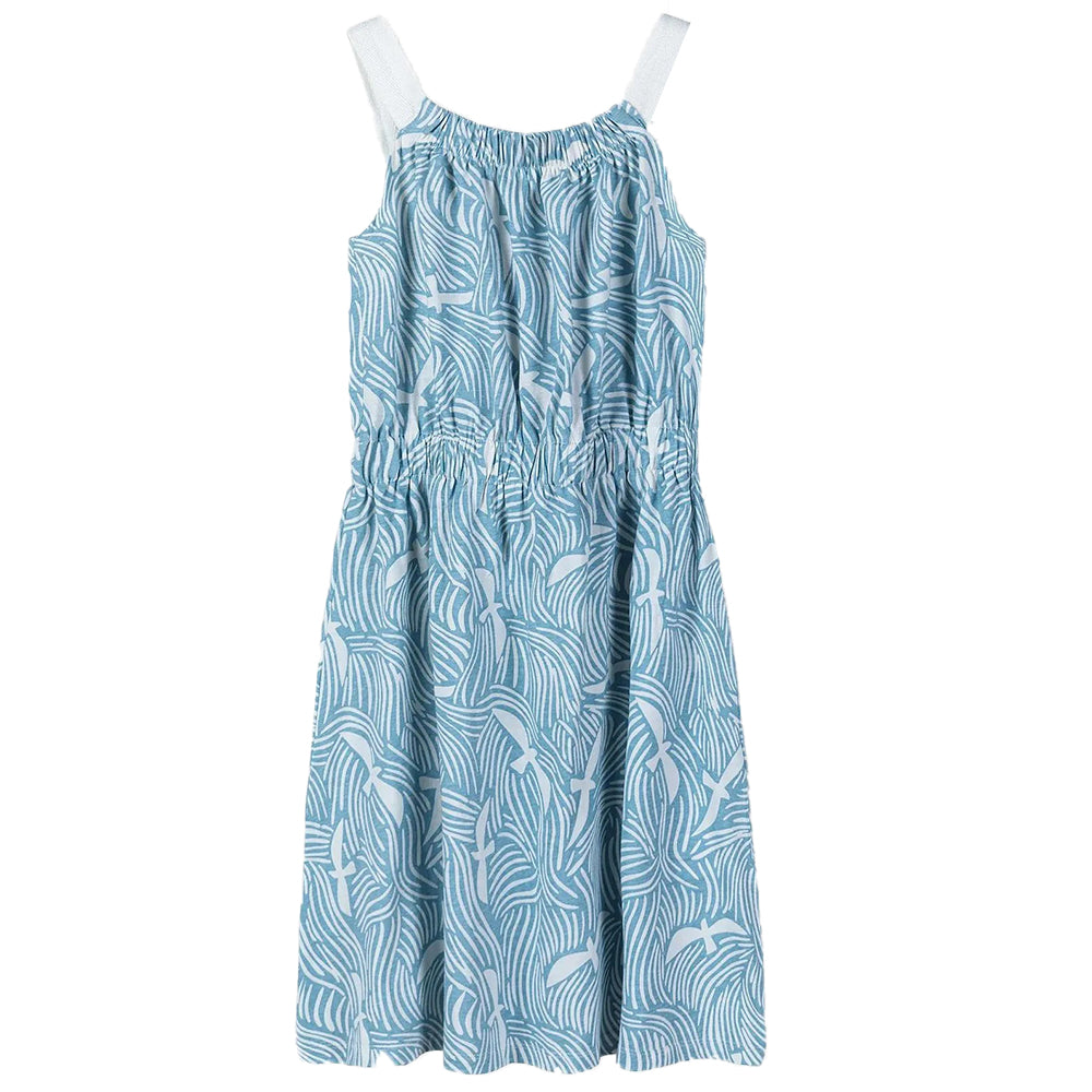 L&S White Birds Print Light Blue Sleeveless Frock 13528