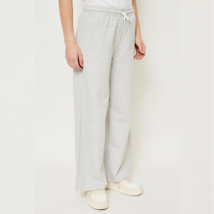 L&S White Cord Plain Textured Grey Plazo 14650