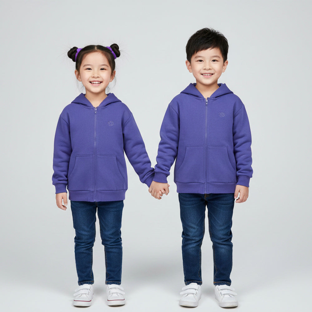 LE LTD Embroided Purple Fleece Zipper Hoodie 14595