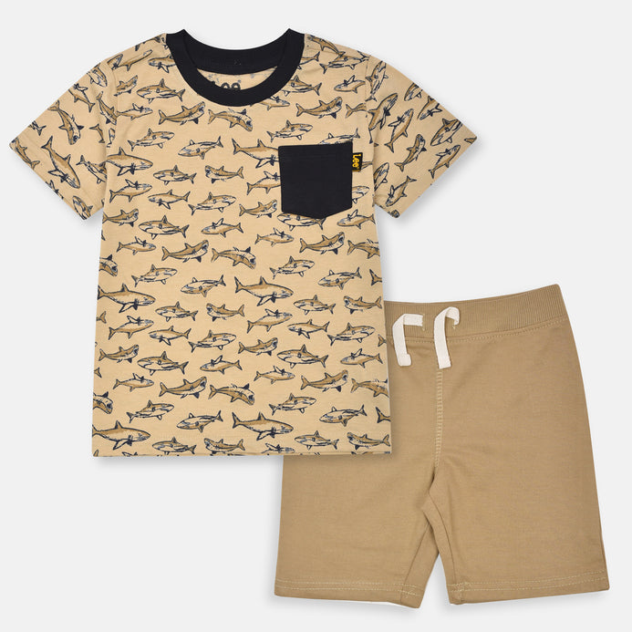 Lee All Over Sharks Brown T-Shirt with Contrast Brown Shorts 2 Piece Set 13044