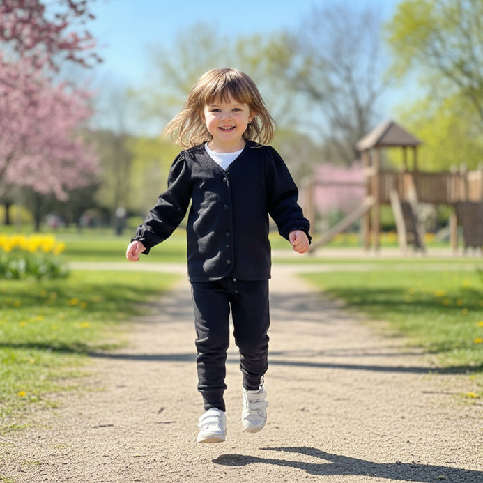 M&M Frill Sleeve Style Plain Navy Blue Terry Cardigan 14585