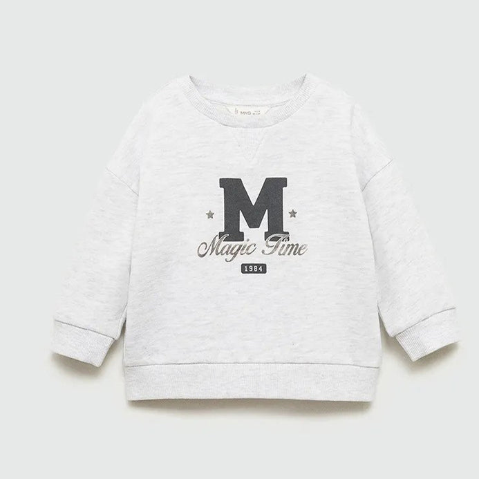 MNG Glitter Magic Time & Stars Textured Grey Fleece Sweatshirt 14239