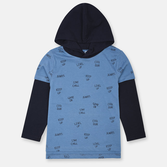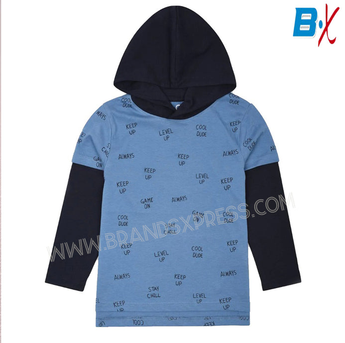 NDC Cool Dude Contrast Hood Full Sleeves Cadet Blue T Shirt 10380