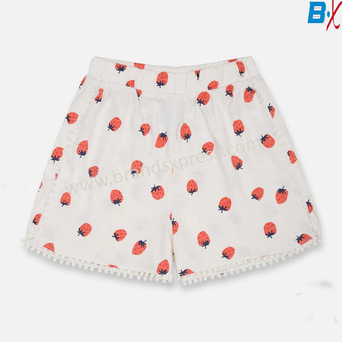 NXT Lace Bottom Strawberry Print White Girls Soft Shorts 11175