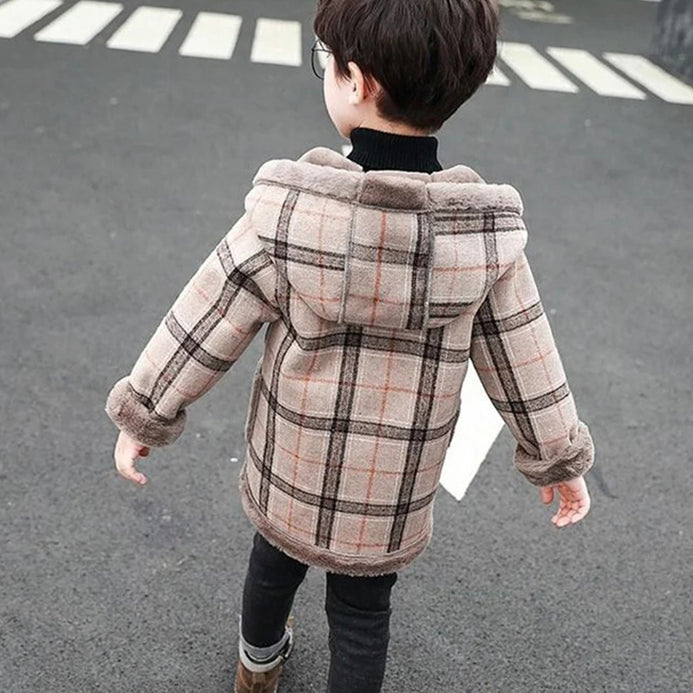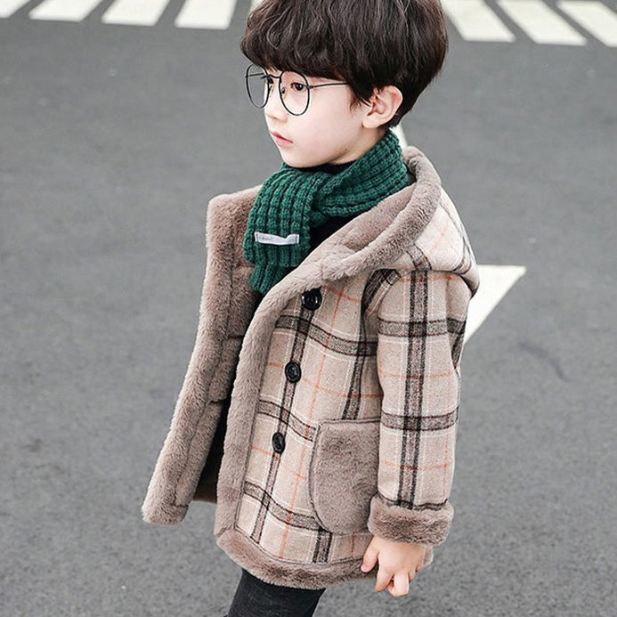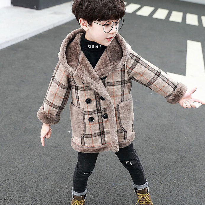 RXKZ 6 Buttons Fur Pockets Check Brown Inside Fur Warm Coat 10529