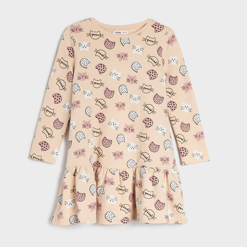 SSY Allover Cats Print Biscuit Brown Full Sleeves Terry Frock 10385