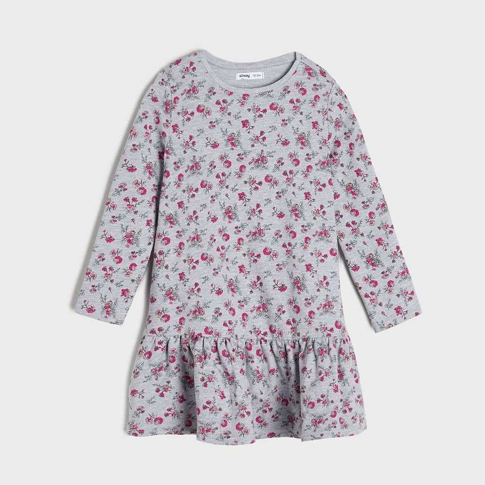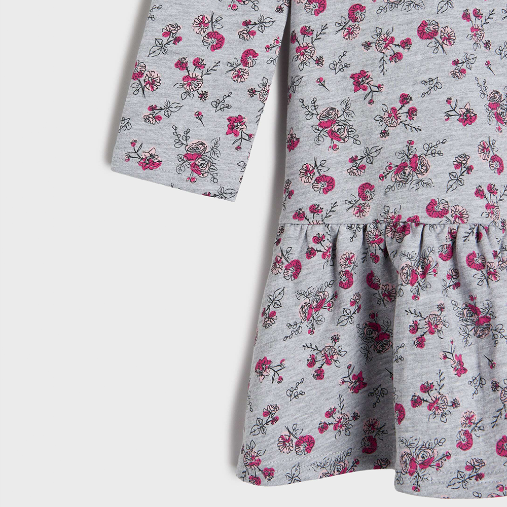 SSY Allover Pink Flower Grey Full Sleeves Terry Frock 10388