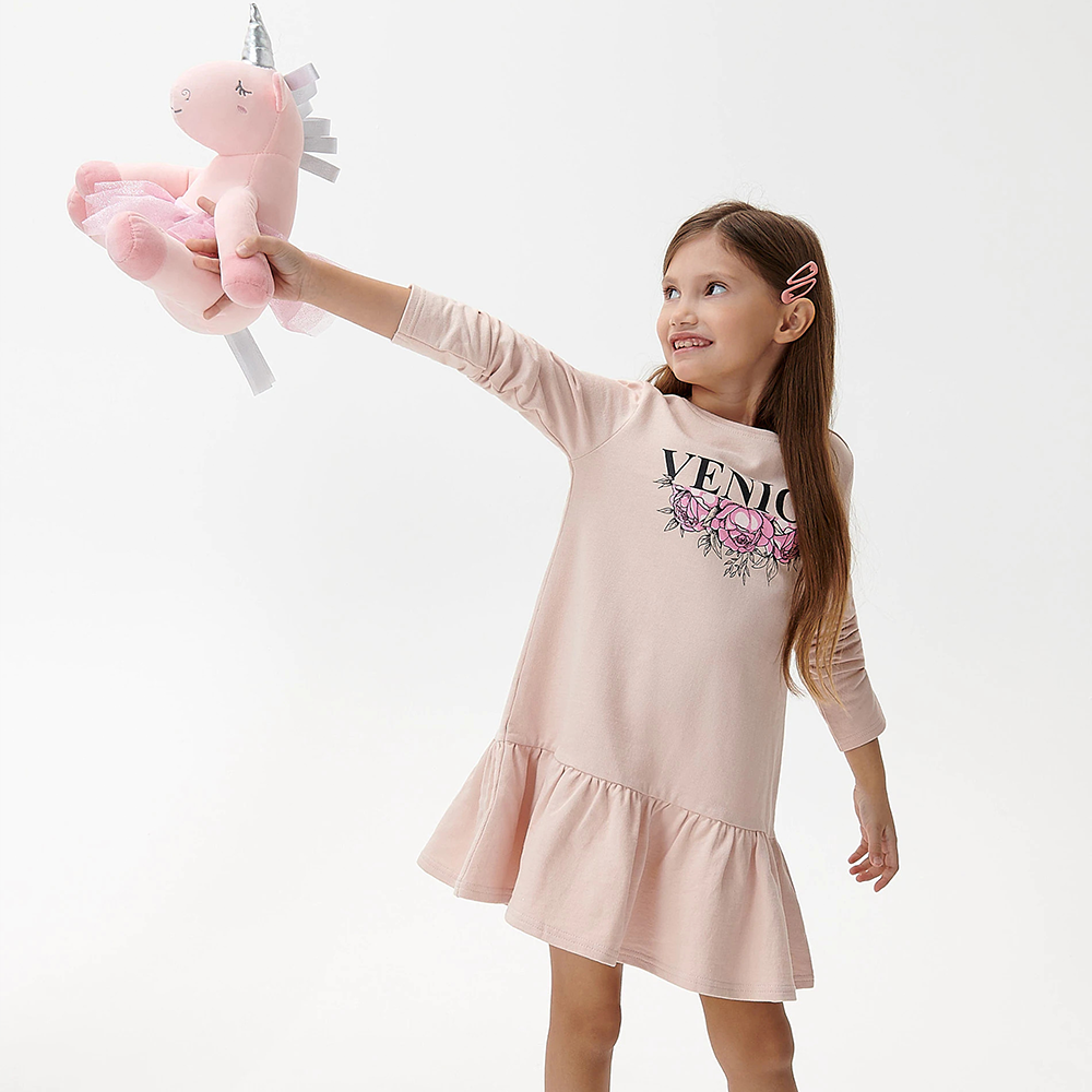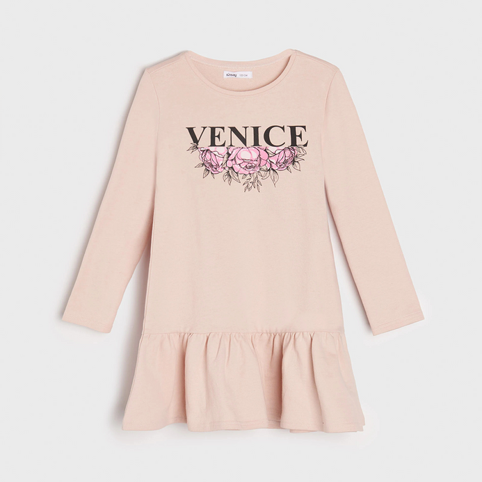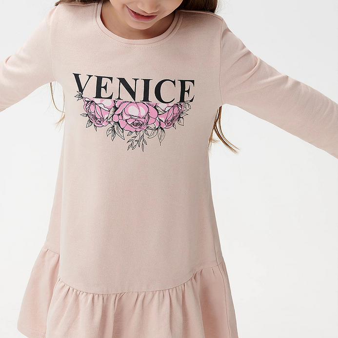 SSY Venice Flower Print Tea Pink Full Sleeves Terry Frock 10386