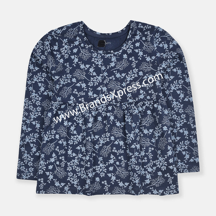 TU All Over Floral Full Sleeves Blue Flare Style Short Top 9785