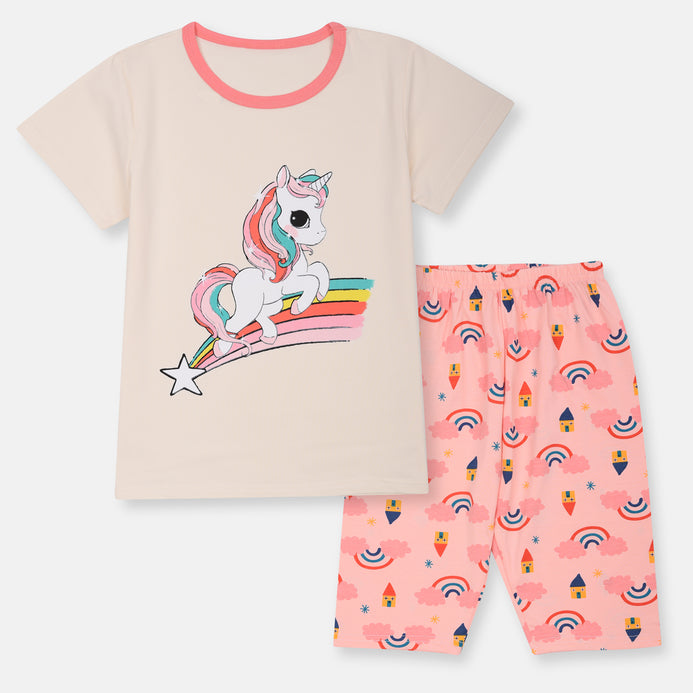 Unicorn Cream & Peach 2pc Shorts Set 9670