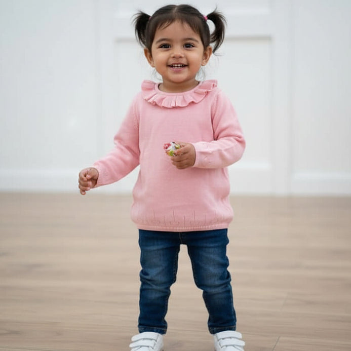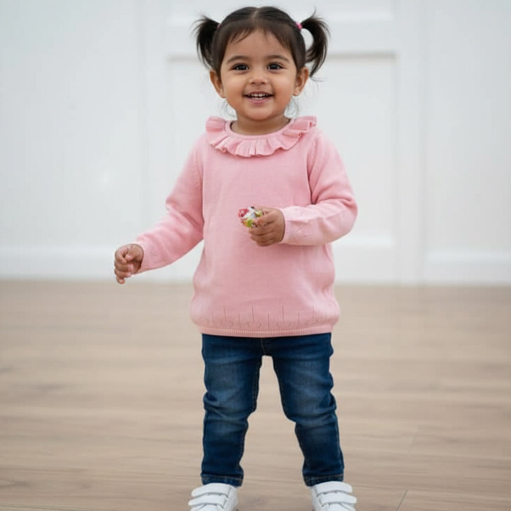 V BiB Frill Style Back Button Pink Sweater 14441