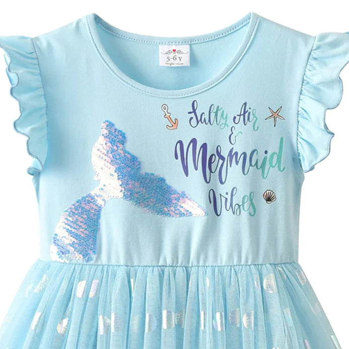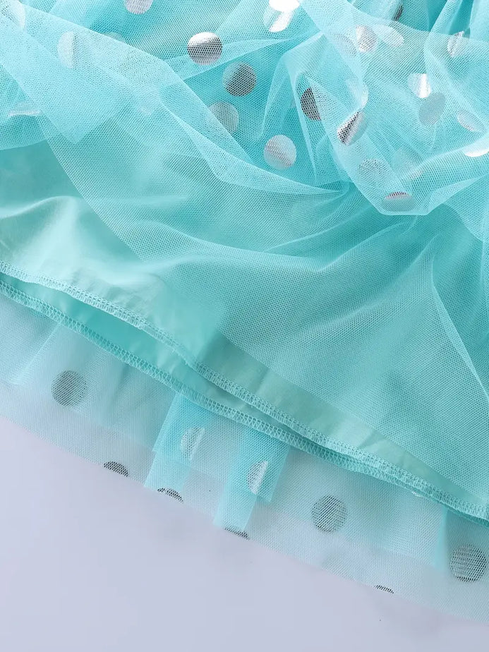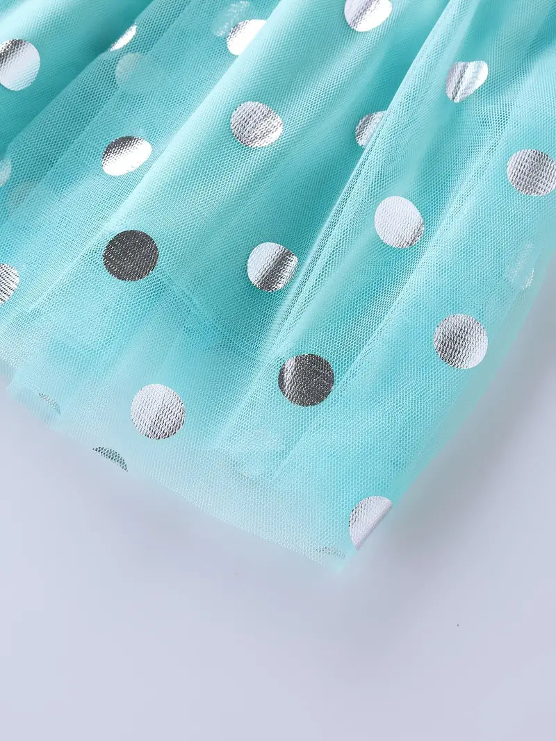 VKT Sequin Mermaid Polka Dots Bottom Blue Frock 11831