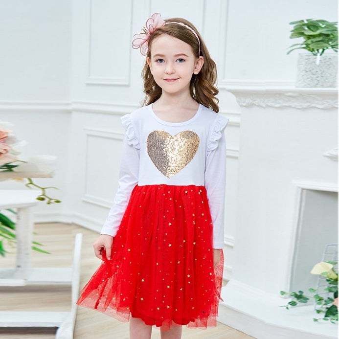 VKT Sequin Golden Heart Red Botton Full Sleeves Frock 10150