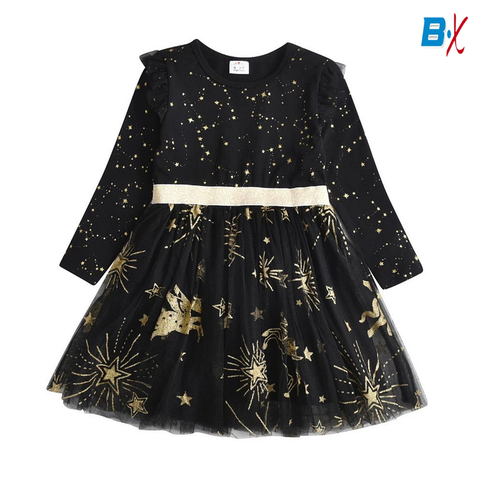 VKT Unicorn & Stars Black Full Sleeves Frock 10153