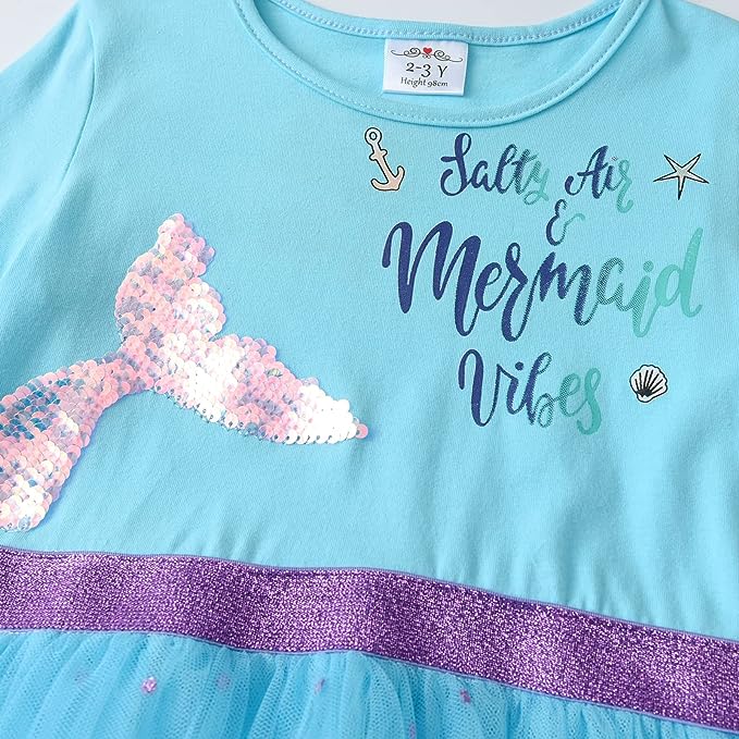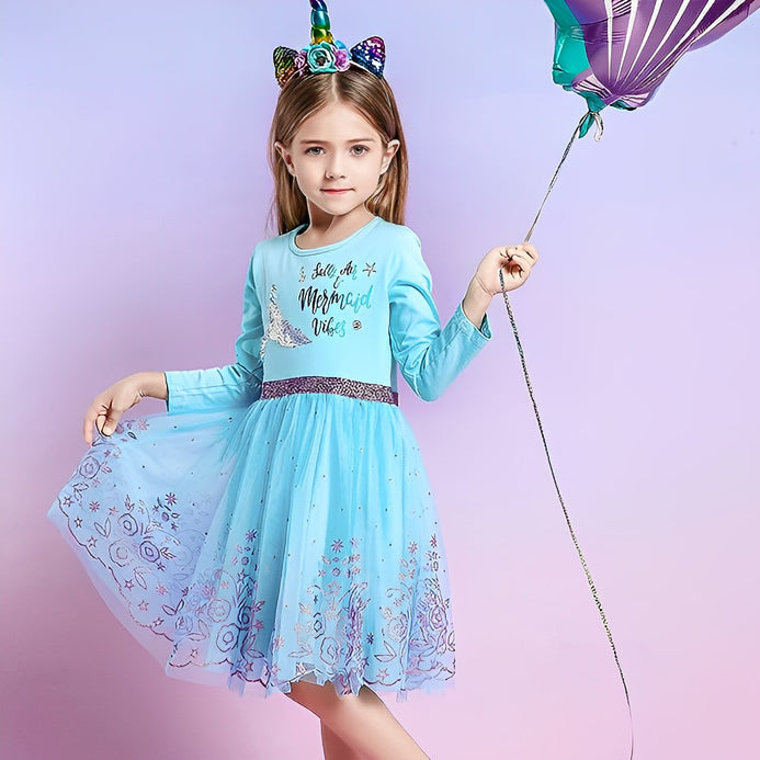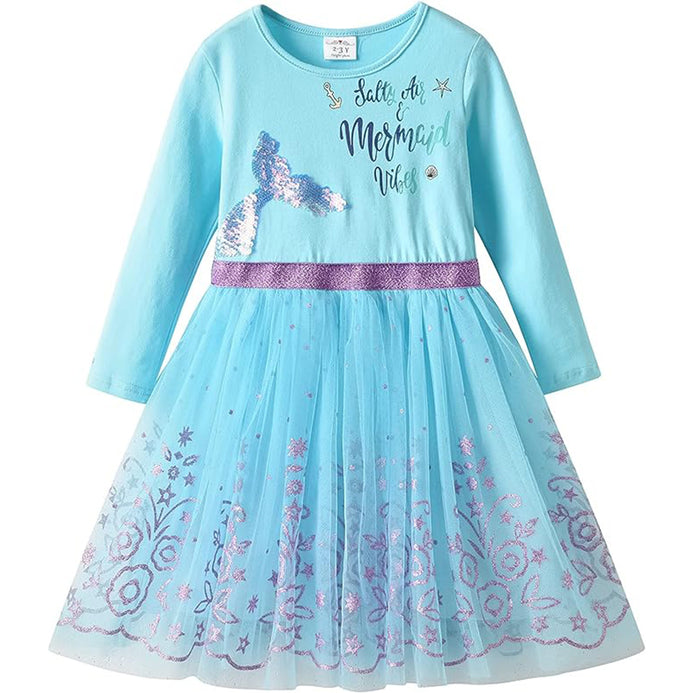 VTK Sequin Mermaid Glitter Bottom Blue Full Sleeves Frock 11828