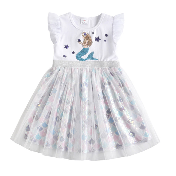 VTK Sequin Mermaid Multi Scale Bottom White Frock 11829