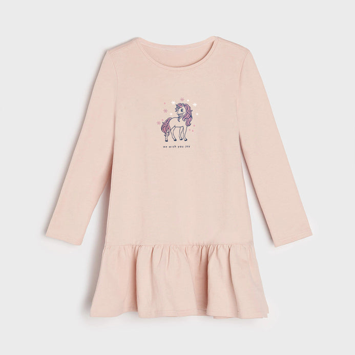 WKD Wish You Joy Unicorn Pink Full Sleeves Frock 12222