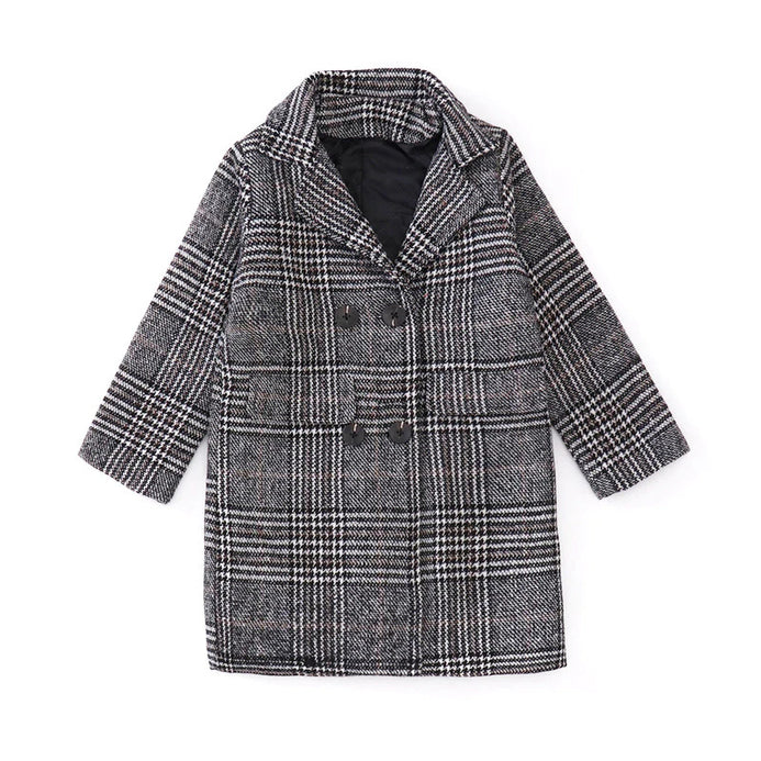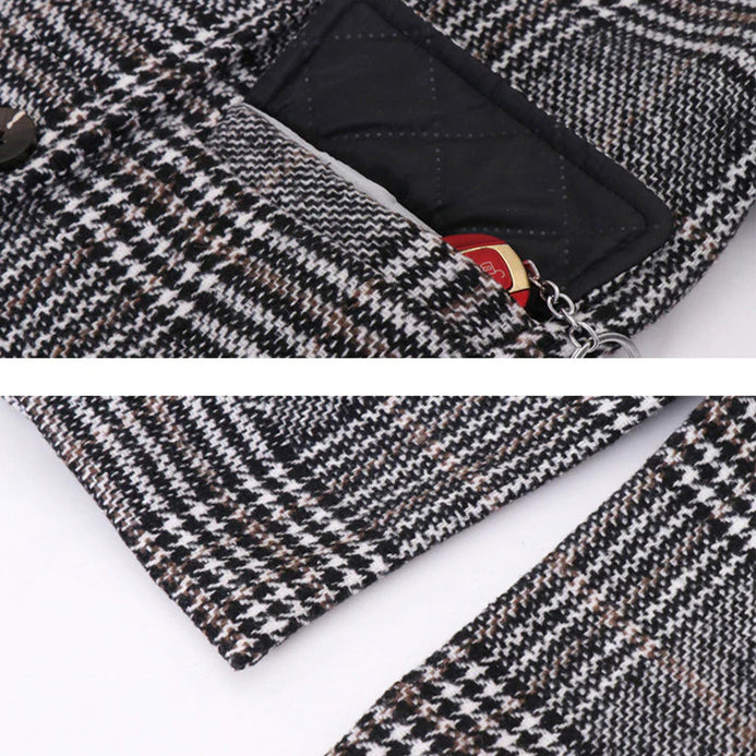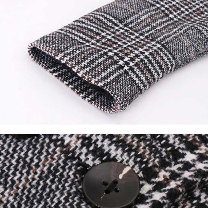 - XL Slim & Long Style Black & White Check Warm WoolenCoat 10531