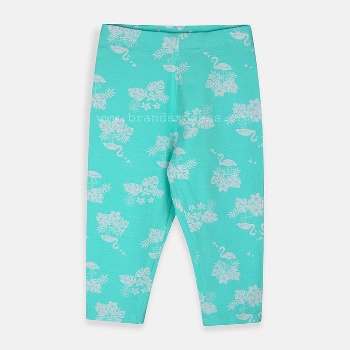 ZR Flamingo And Flower Printed Turquoise Blue Capri Legging 4767