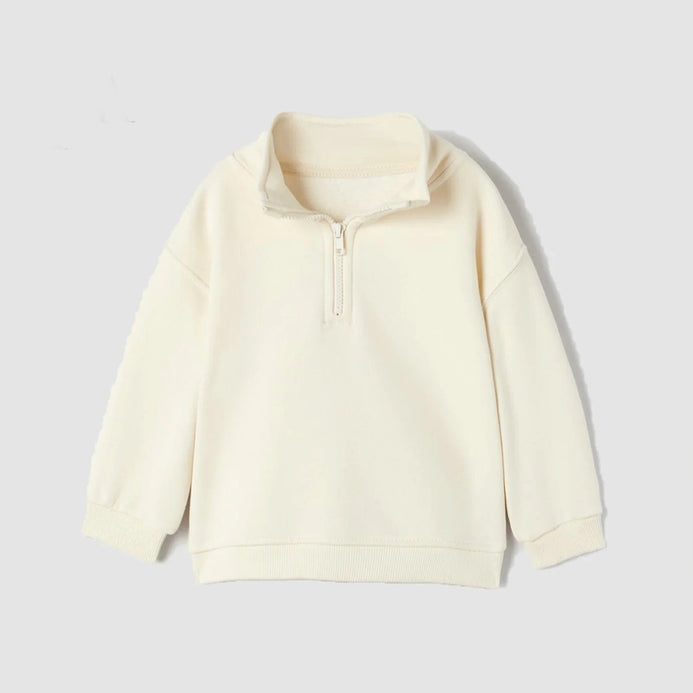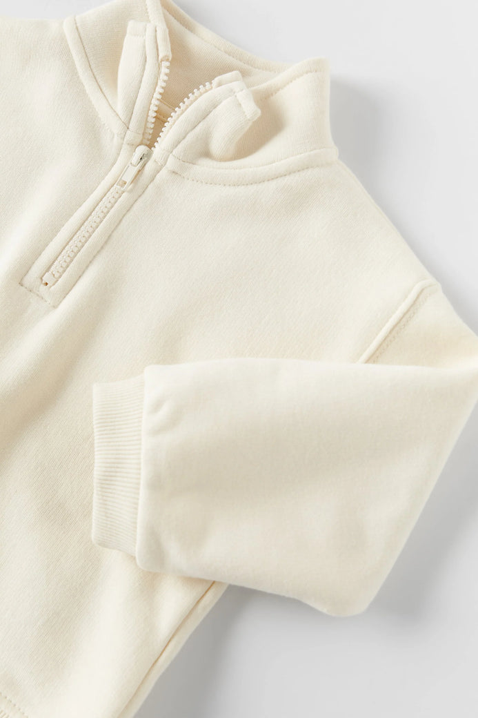 ZR Half Zip Mock Neck Loose Style Cream Terry Sweatshirt 12204