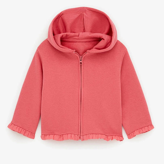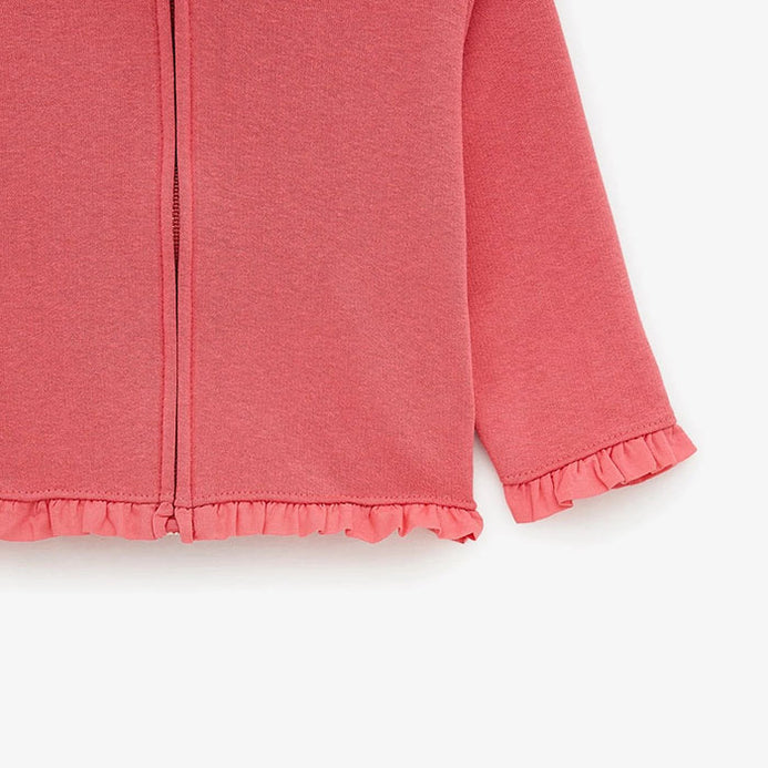 ZR Pink Frill Bottom Terry Zipper Hoodie 14530