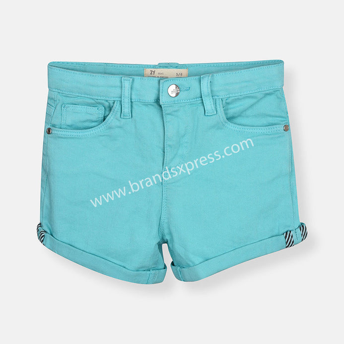 - ZY Folded Bottom Turquoise Girls Cotton Shorts 8788