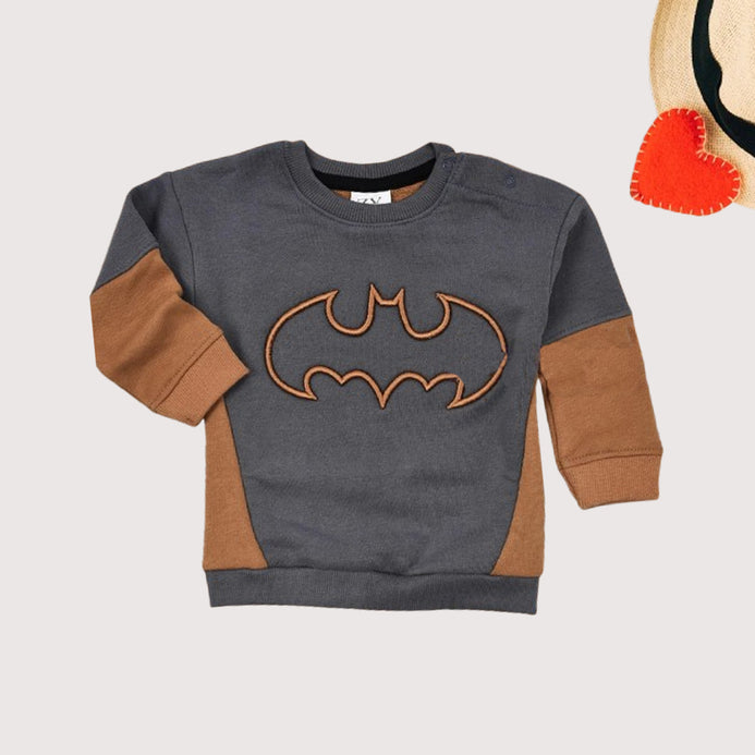 ZY kids Bat Logo Grey & Biscuit Brown Contrast Terry Sweatshirt 13607