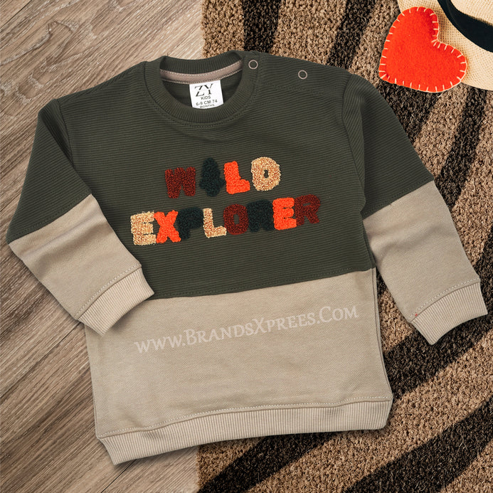 ZY kids WILD EXPLORER Embroided Ottoman Olive Green & Base Terry Sweatshirt 13609