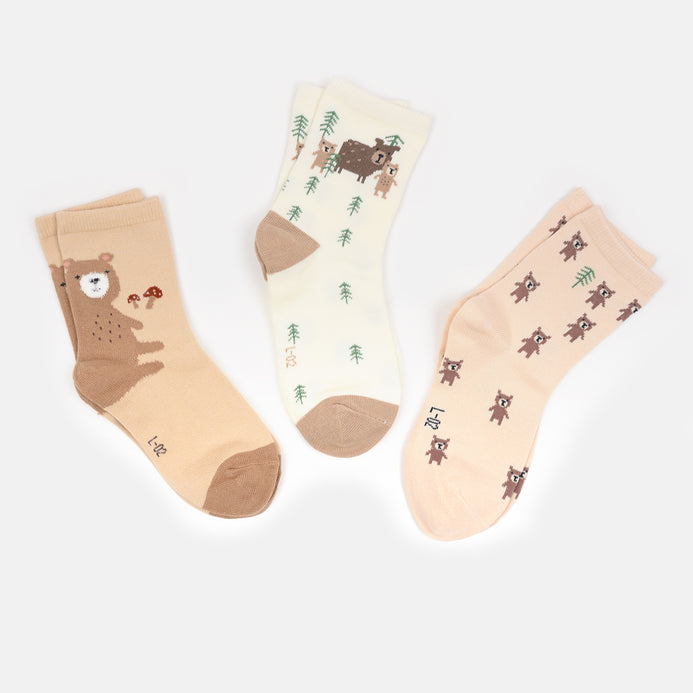 CRM Brown & White Bear 3 Piece Socks Set 9262