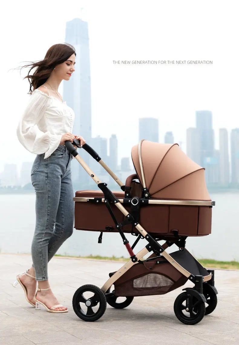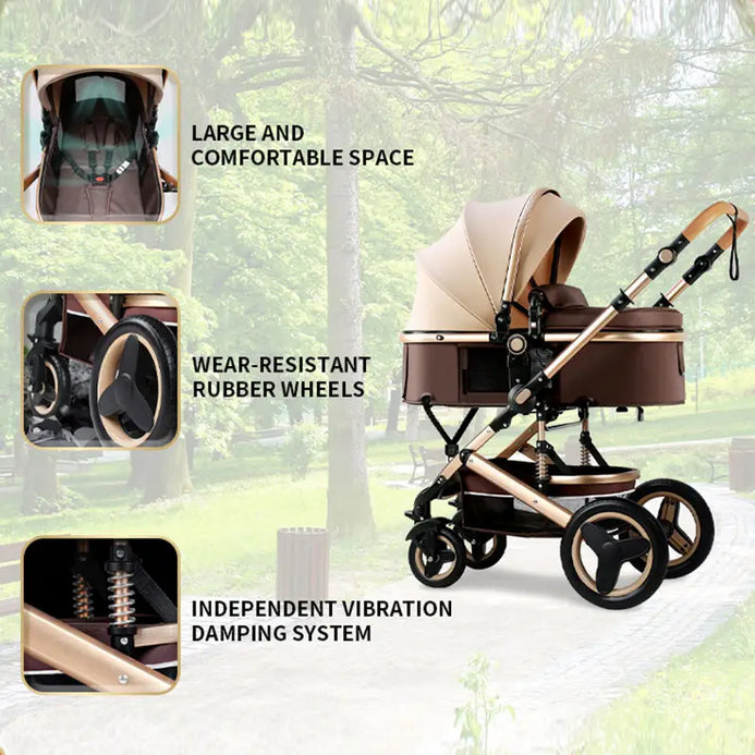 Multifunctional Elite Baby Stroller with European Style Car Cot 3 in 1 Brown 12906