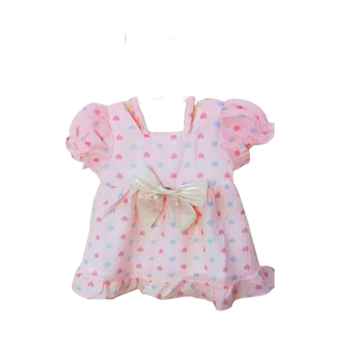 - CN Blue & Red Hearts Print Mid Pink Frock 11072
