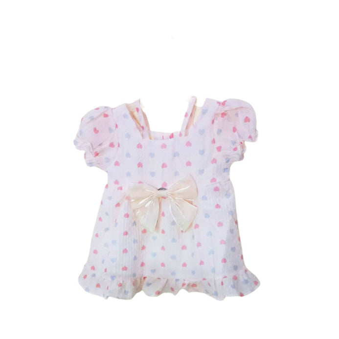CN Blue & Red Hearts Print Postal Pink Frock 11073