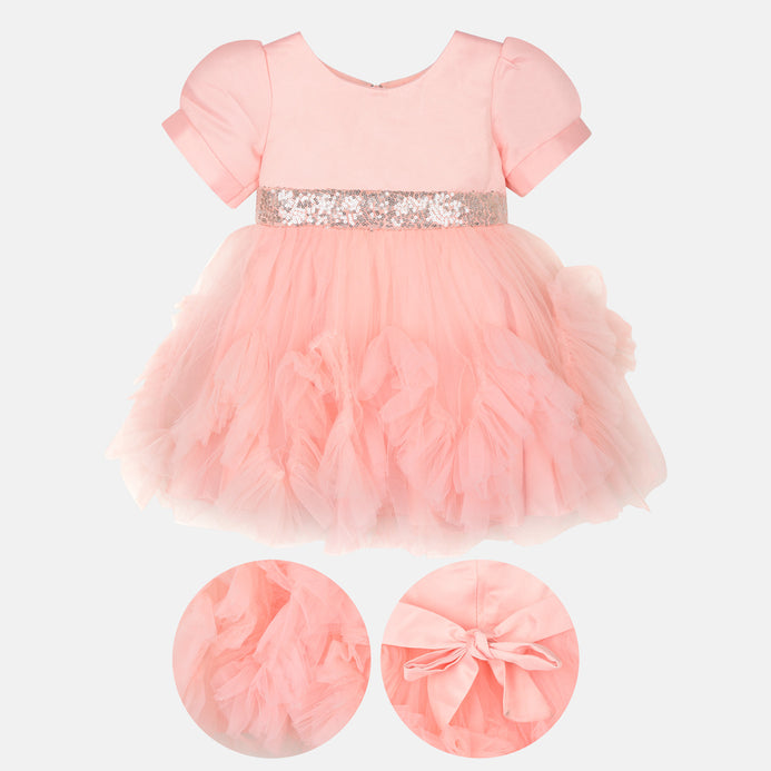 CN Sequin Front Belt Flare Bottom Pink Fancy Frock 10731