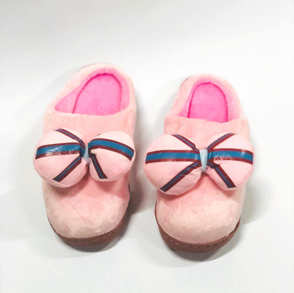 Aplic Pink Bow Warm Pink Winter Soft Slippers 8295