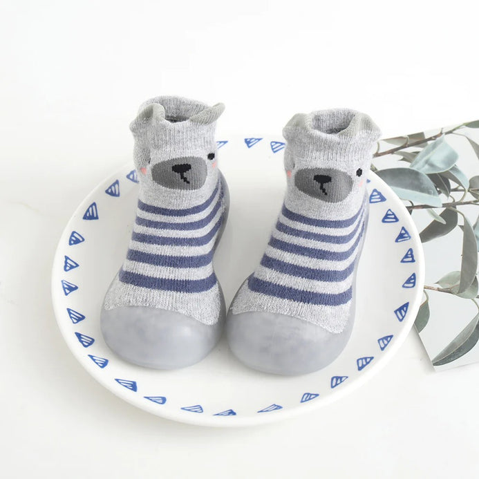 CN Blue & Grey Stripes Silicon Bottom Socks Shoes 12557
