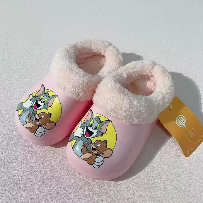 CN Tom & Jarry Print Pink Warm Slippers 10616