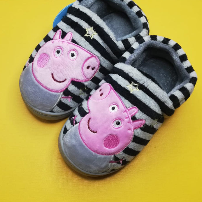 PP Peppa Aplic Black Grey Stripes Warm Shoes 10629