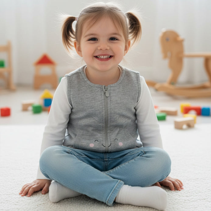 - 5.10.15 Cartoon Face Sleeveless Grey Fleece Zipper 14524