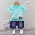 Yougi Turquoise Applique Cat Bow Face 2 Piece Set 2251
