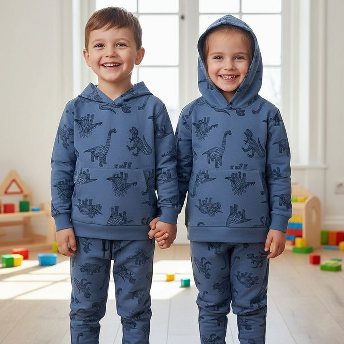 5.10.15 All over Dino Print Kangroo Pocket Terry Hoodie & Jogger Trouser Terry Blue Tracksuit 14973
