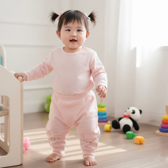 5.10.15 Cat Face Elastic Waist Baby Pink Terry Trouser 14426