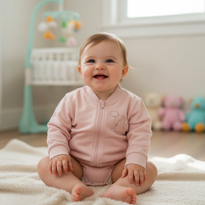 5.10.15 Rabbit Little Dreamer Print Mock Neck Baby Pink Terry Zipper 14523