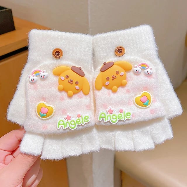 CN Angele Rabbit Fur Double Style Warm off White Gloves 13720